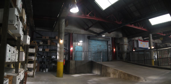 Another view, showing a ramp up to a loading door. Ramps and skylights were part of the location