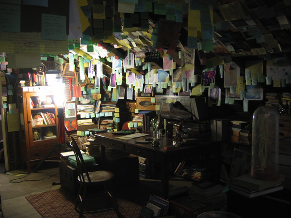 The profusion of notes and other papers was a reflection of the character's mental state,