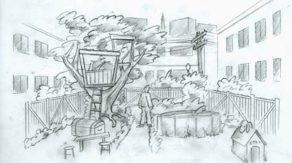 This is quick sketch of a television kidshow set.